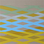 In her own words, each painting arises from “a balancing dialogue between a line and the movement of colour,” where lines shape space and colours gain form and energy. On her canvases, precisely tuned colours align with grids and rhythms, while areas of unpainted linen keep the work open and spatial—inviting the viewer’s eye to move through shifting hues, lines and subtle variations in paint.