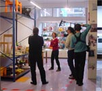is met haar twee medewerkers en een stagiair plus de vrijwel complete