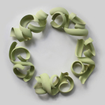 For the first time Wouter Dam made work consisting of several parts. Together they form a ring that hangs on the wall. At VIVID you can see a green ring out of 5 parts and a soft pink ring of 7 parts hung opposite of each other in the middle of the exhibition.