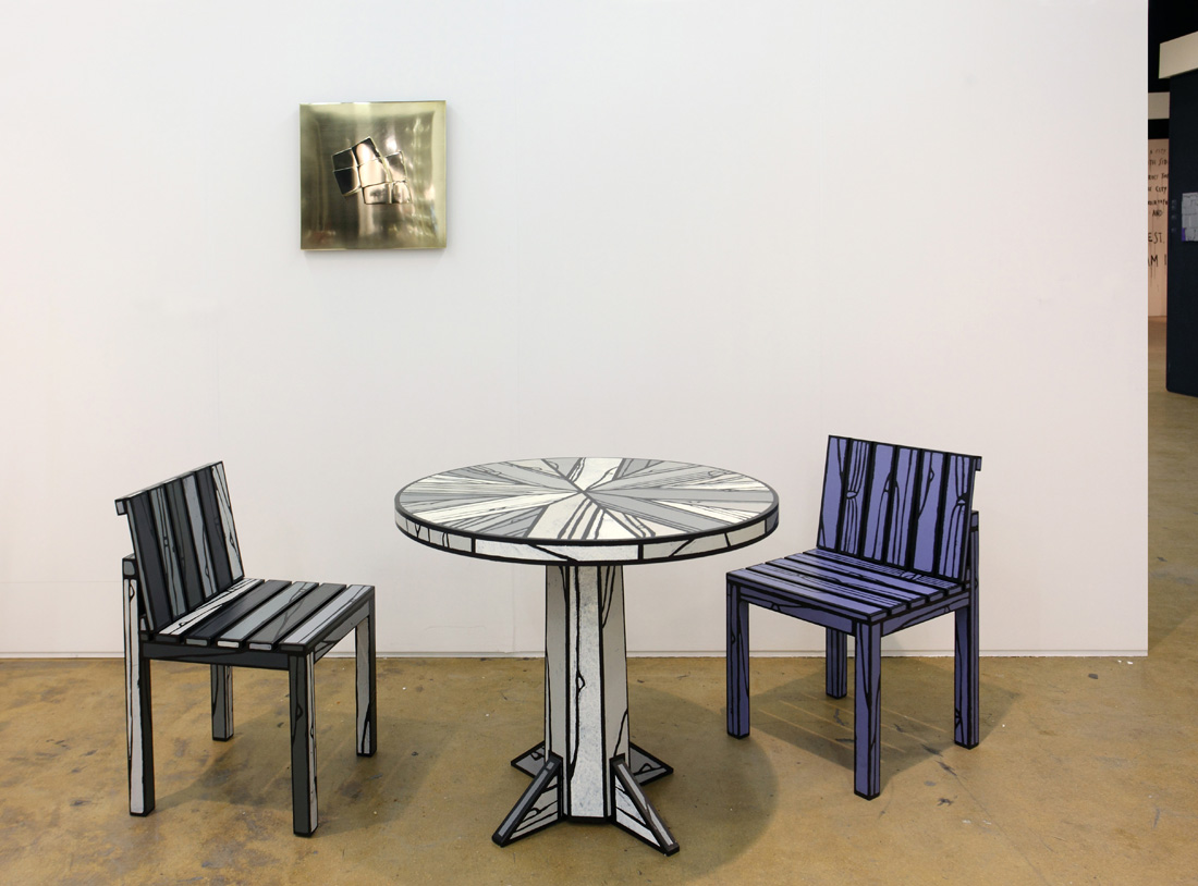 André Volten (wall), Richard Woods & Sebastian Wrong (chairs & table)