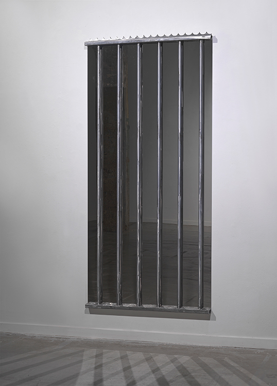 Galerie VIVID Ciro Duclos Frontera (2023) Steel fence, High polished stainless steel, 200x92x6 cm, Photo: G. J.van Rooij Art Rotterdam 2025, Ahoy, Galerie VIVID