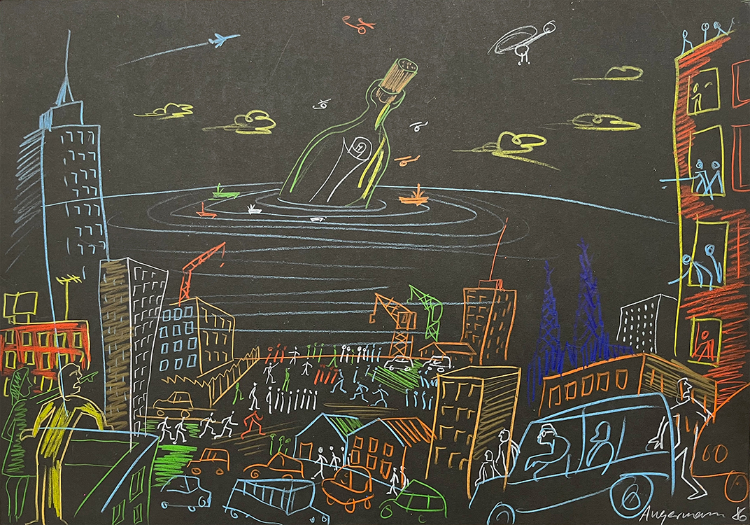 Peter Angermann, Flaschenpost 1986 35x50 cm